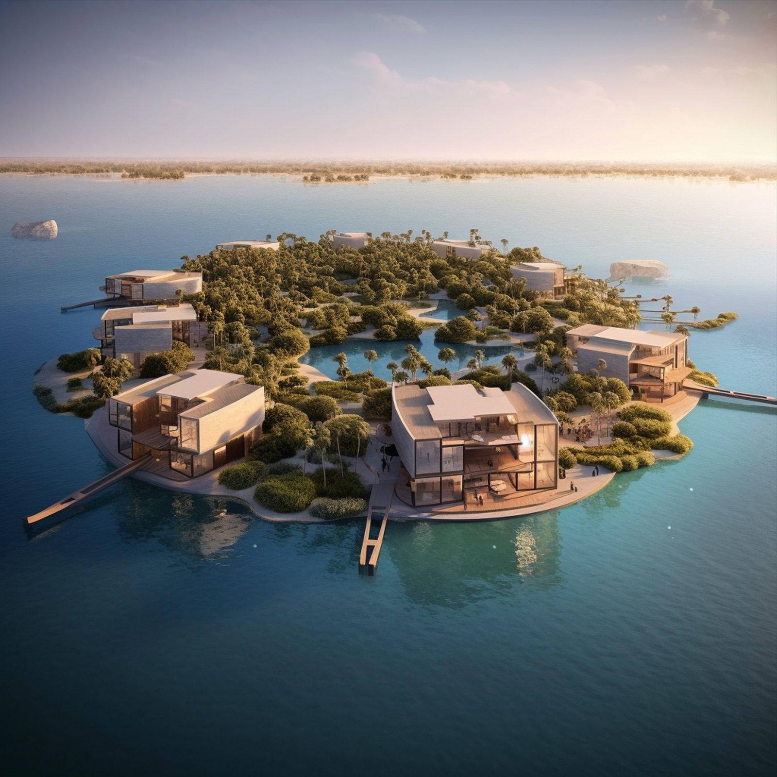 Private villas with walled gardens and pools, arranged in low-density clusters across the peninsula for absolute privacy.